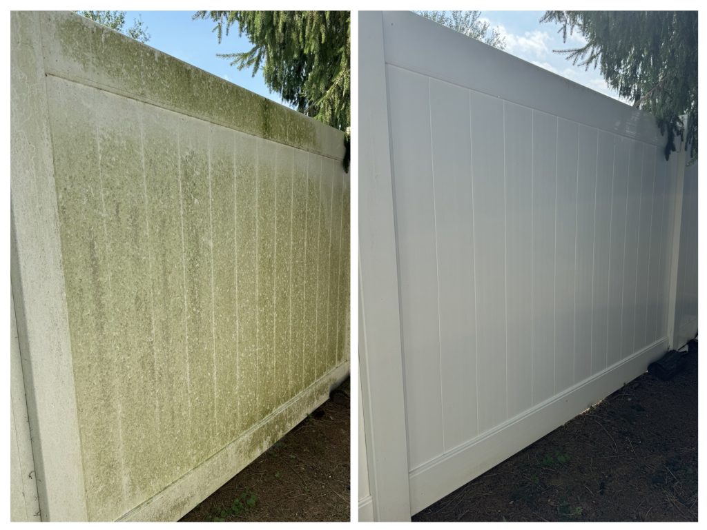 Every deck and fence requires a different approach—and we have the knowledge, experience, and equipment to do it right. Composite and vinyl surfaces are treated with our soft wash system and eco-friendly sodium hypochlorite (SH) cleaners, while wood requires a specialized process using sodium metasilicate and oxalic acid for restoration. For certain woods, we also apply oxygen-based cleaners to safely lift organic growth and stains. By tailoring our methods to each material, we ensure your deck or fence is cleaned effectively, protected from damage, and restored to its natural beauty.