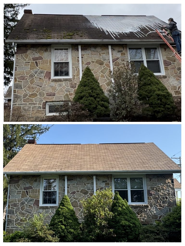 Our roof soft washing service safely cleans shingles, metal, tile, cedar shake, and more without the risk of high-pressure damage. Using a low-pressure, high-flow system paired with eco-friendly cleaning solutions, we kill and remove algae, moss, and other organic growth at the root. This process not only restores your roof’s appearance but also extends its lifespan by preventing premature wear—keeping your home looking great and protected from top to bottom.
